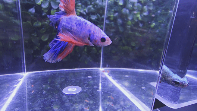 [ 베타컬렉션 - 1마리 한정판매! ] 10. 할리퀸 페더테일 하프문 베타 - 숫 ( 양쪽 단추 먹눈 )