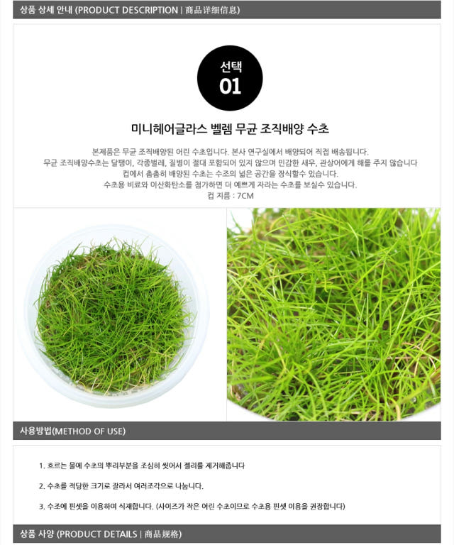 미니헤어글라스 조직배양수초 컵수초